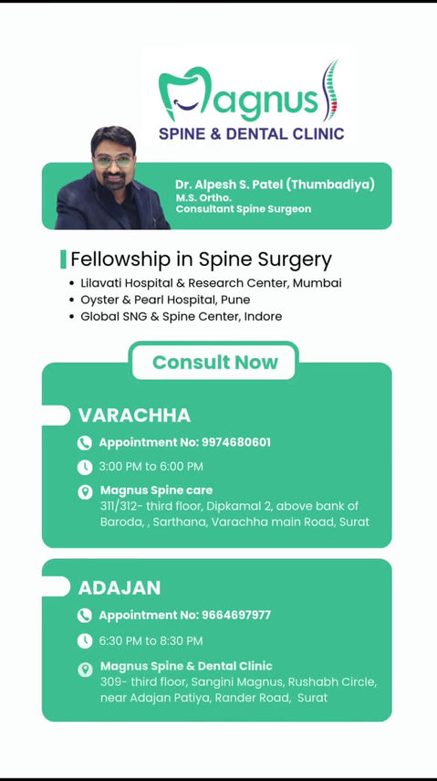 Dr. Alpesh Thumbadiya’s accomplishments are many and spread throughout his career. To mention a few, he has successfully performed more than 4,000 spine surgeries, out of which 500 are performed with him as a lead consultant. He understands spinal pathology deeply and his expertise, particularly in performing minimally invasive spine surgeries is well known.